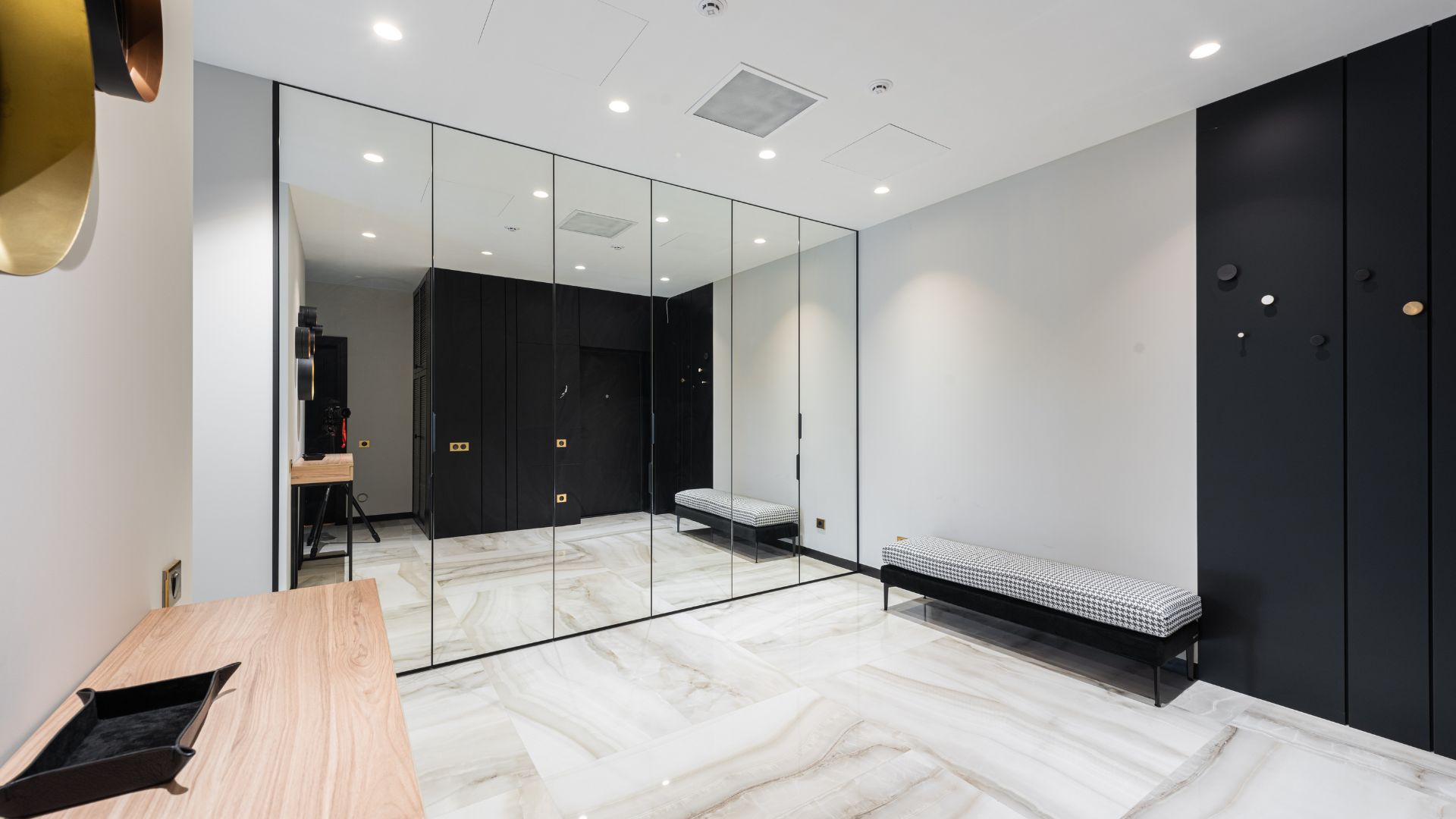 Espejos en áreas sociales y dormitorios.